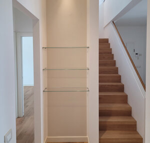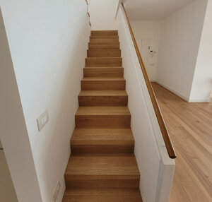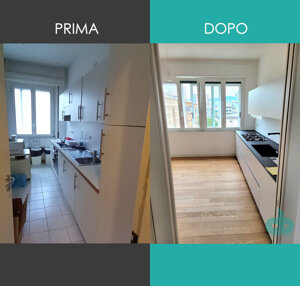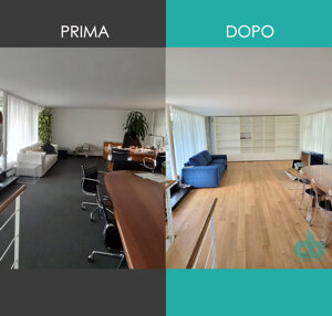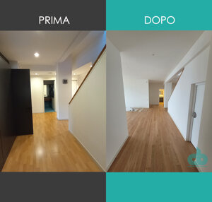 Appartamento che si sviluppa su due livelli. Un progetto che valorizza la continuità e la luminosità degli spazi grazie all'uso di un parquet chiaro uniforme in tutta la casa, compresa la scala. Lo stile, semplice ma ricercato, si distingue per l'attenzione ai dettagli e le soluzioni su misura.