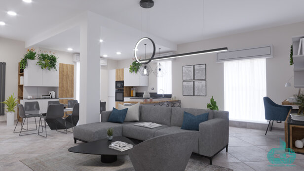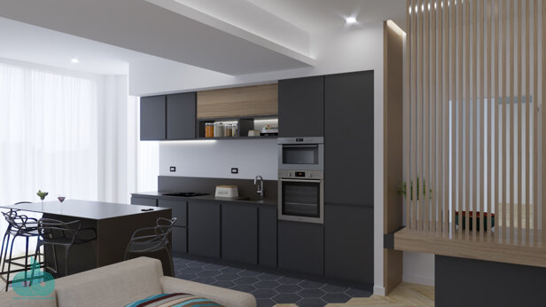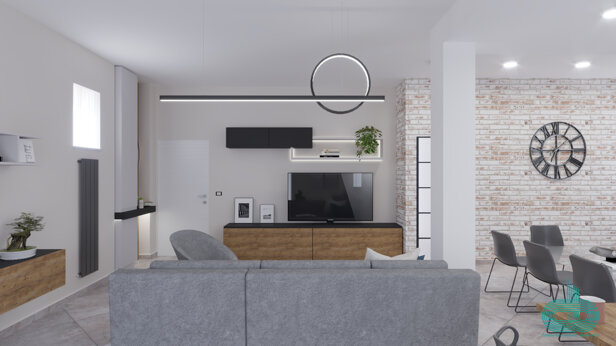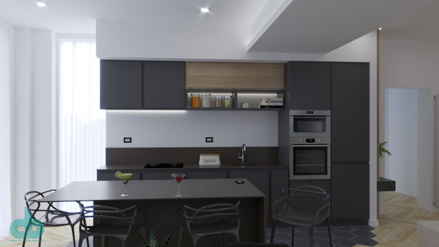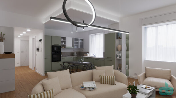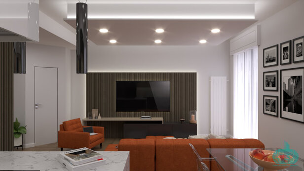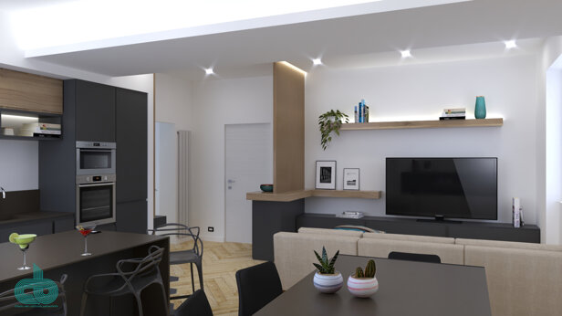 Rendering fotorealistici della soluzione progettuale e planimetria arredata con coni ottici di riferimento · Residenziale · 120 mq · Genova, marassi