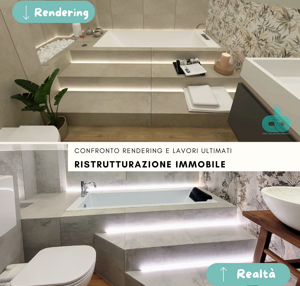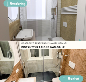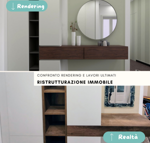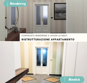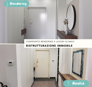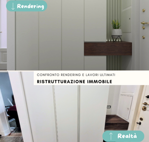 > A seguire alcune fotografie di dettaglio, rendering della soluzione progettuale, il confronto pre-post i lavori di ristrutturazione e il confronto tra il rendering fotorealistico della soluzione progettuale e a lavori ultimati :