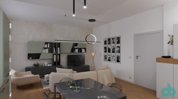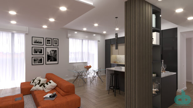Rendering fotorealistici della soluzione progettuale e planimetria arredata con coni ottici di riferimento · Residenziale · 80 mq · Genova, marassi